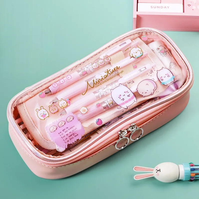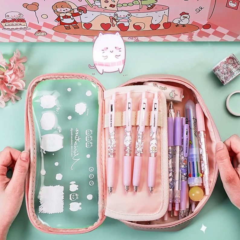 Пенал-косметичка. Современный и стильный вариант пенала. Его предпочитают старшие школьники. Он представляет собой чехол с мягким корпусом из ткани или кожи на молнии. В него вмещается около 50 предметов. Внутри чаще всего одно отделение.